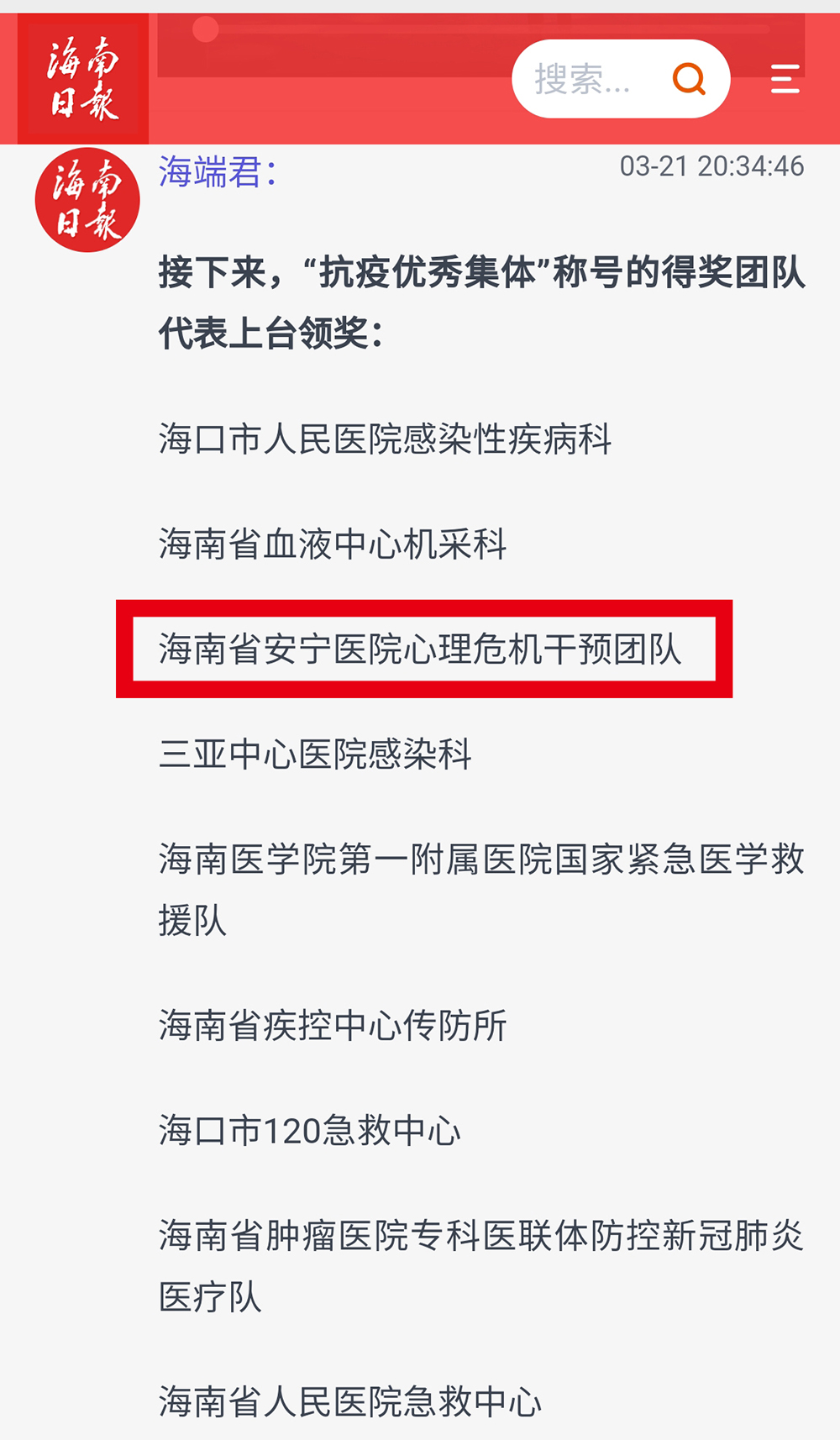 据悉,“寻找百姓身边好医护——最美的抗疫英雄”评选活动由海南省卫生健康委、海南日报报业集团联合举办,全省共有42个医护代表参加评选,“ 抗疫优秀集体”名单由网上公开投票和专家评审组意见相结合的方式产生。