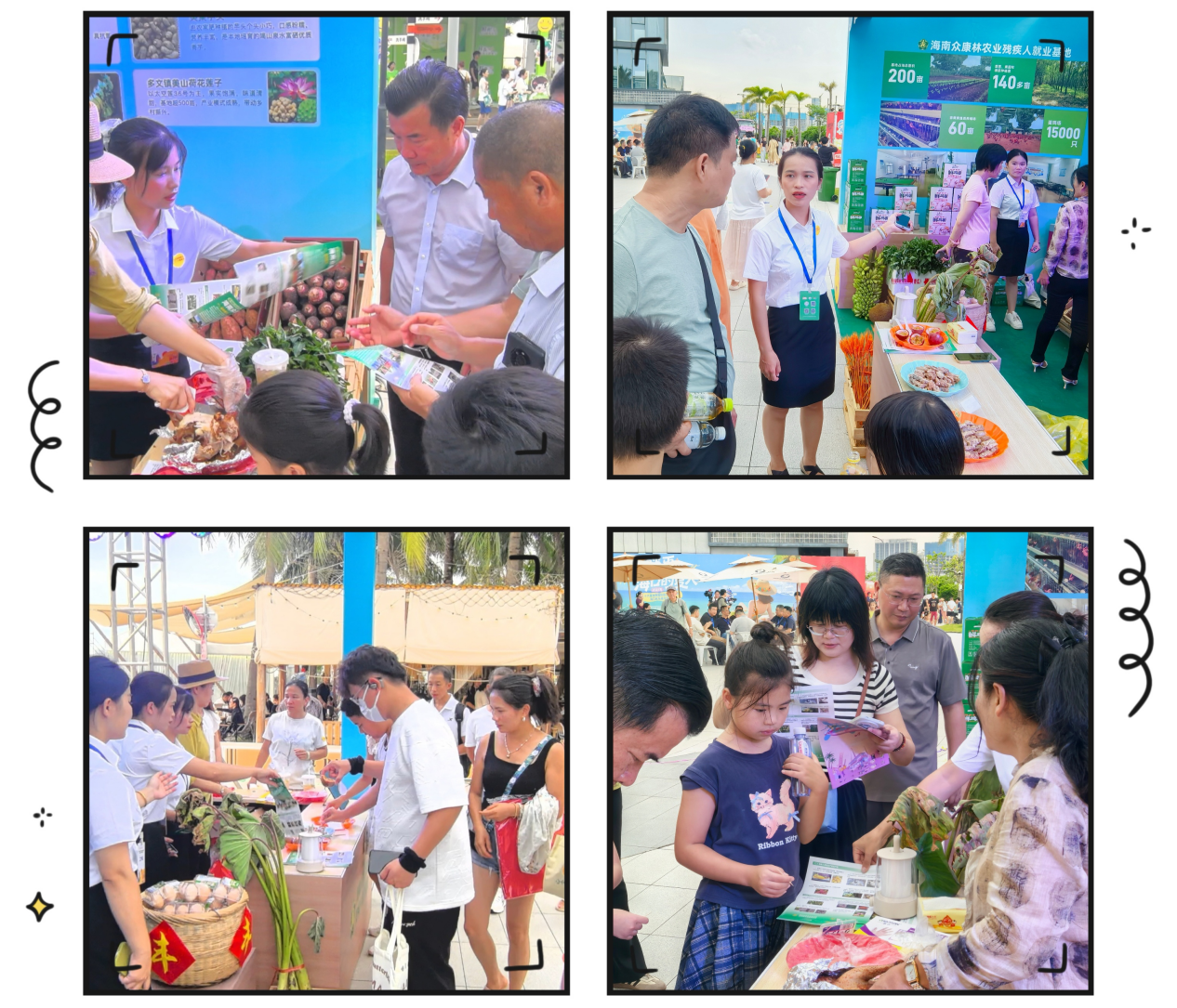 2025年6月,基地通过省残联验收,依托联盟专业团队与社区康复中心全程监护,联动多乡镇合作社,将就业帮扶延伸至残疾人家庭,并借助省残联“心缘心”电商直播基地拓宽销售渠道。在欢乐节现场,基地带来了残疾人养殖的鸡蛋、家禽,手工星月菩提,以及残疾人家庭生产的富硒农产品等,每一件产品都凝聚着残疾人自强不息的精神。此外,还展销临高多文地区特色产品,助力乡村振兴。