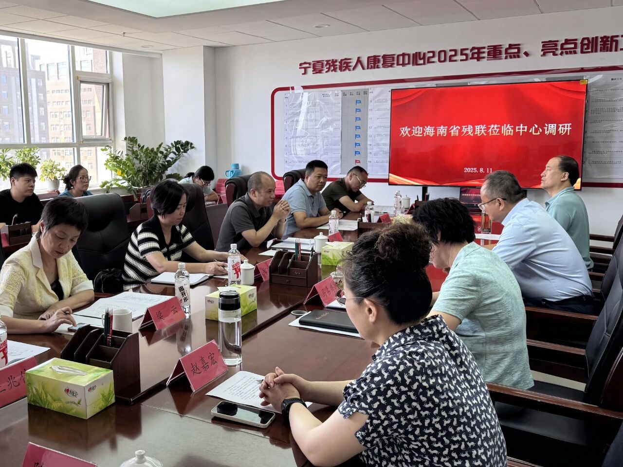 2025年8月11日至12日,海南省残联党组成员、副理事长吴波率康复部工作人员及康复中心工作专班成员,赴宁夏回族自治区考察学习残疾人康复工作先进经验。宁夏回族自治区残联党组成员、副理事长王怀柱陪同调研。