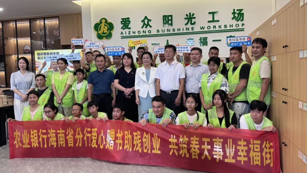 10月17日,农业银行海南省分行工会工作部副总经理冯炜率队一行,走进“春天事业一条街”爱众益心残疾人就业创业基地,成功举办以“知识照亮创业路农行书香暖人心”为主题的“书香助创”捐书活动。此次活动由省残联协同参与组织,旨在为残疾创业者提供精神文化支持,进一步搭建金融企业与残疾人创业群体之间的帮扶桥梁,共同推动我省助残事业深入发展。