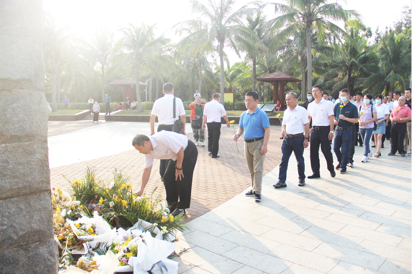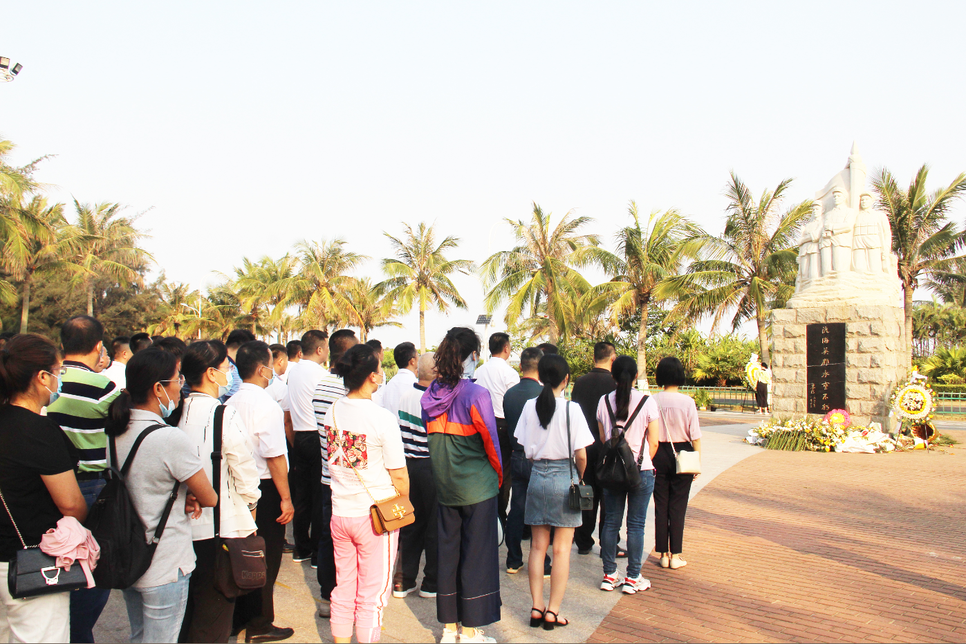 当天上午,省残联机关和直属单位 100 多名党员干部们在纪念碑前伫立默哀,并为在白沙门渡海作战中牺牲的烈士们献上了洁白的菊花。白菊哀悼先人,寄去了后人的敬意与思念。在党员干部们真挚的神情中,讲解员将这段激烈且英勇的战事娓娓道来。