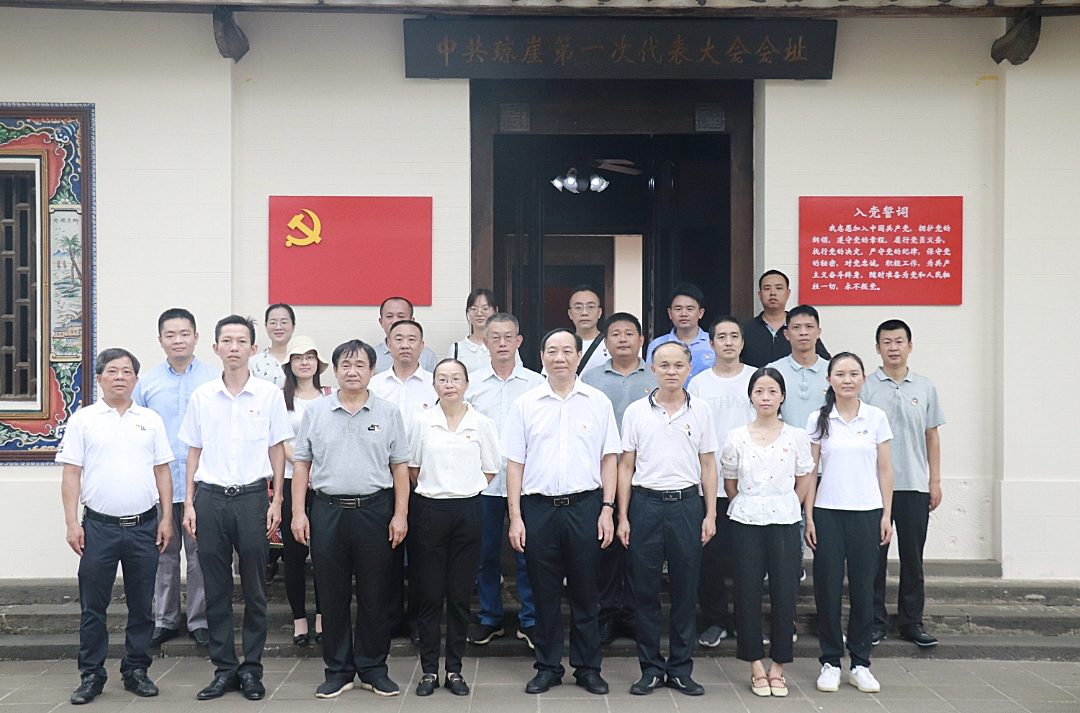 活动现场 , 全体党员干部参观了琼崖一大会址和史料馆,仔细聆听讲解员介绍中共琼崖一大会议时的情景以及杨善集、王文明等 13 位中共琼崖一大代表的生平事迹,感悟琼崖革命“二十三年红旗不倒”精神。随后,黄碧海带领全体同志来到会址内的小课堂,上了一堂革命传统教育课,共同回顾了琼崖革命斗争的光辉历程。在鲜艳的党旗面前 , 重温了入党誓词 。