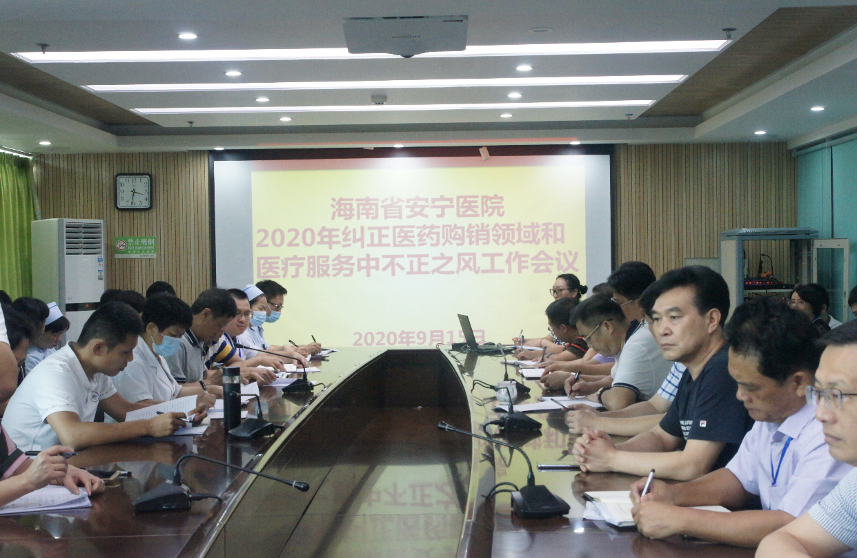 会议传达了国家卫健委纠正医药购销领域和医疗服务中不正之风部际联席会议精神以及海南省卫健委关于纠正医药购销领域和医疗服务中不正之风视频会议精神;总结了医院2019年和部署2020年纠正医药购销领域和医疗服务中不正之风工作。