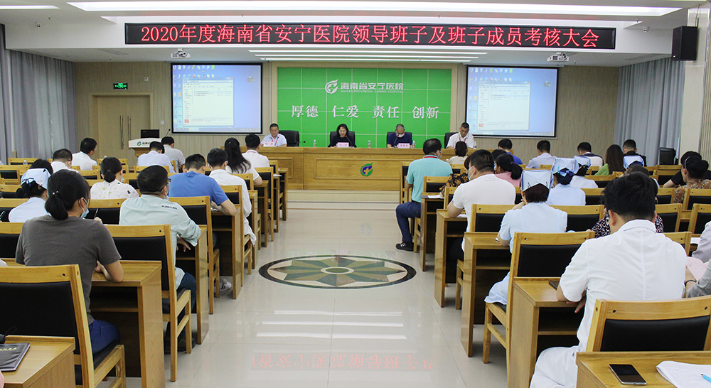 美视网客户端海口3月17日消息(文/图 肖开壮 谢丽坤)3月17日下午,省安宁医院领导班子和领导干部2020年度考核大会在门诊综合楼11楼多功能厅召开。考核组副组长、省卫健委机关党委专职副书记朱菊、省卫健委疾控处一级调研员钟蓬堂等8名处室领导干部,到省安宁医院对领导班子和领导干部进行2020年度考核测评。省安宁医院党委书记林展、院长朱洪、副院长占达飞、杨庆雄、韩天明及中层(后备)干部、党支部书记、部分党员职工代表等70余人参加考核大会。考核会议由钟蓬堂主持,他明确了考核程序和方法和考核测评工作的主要任务、目的和要求。