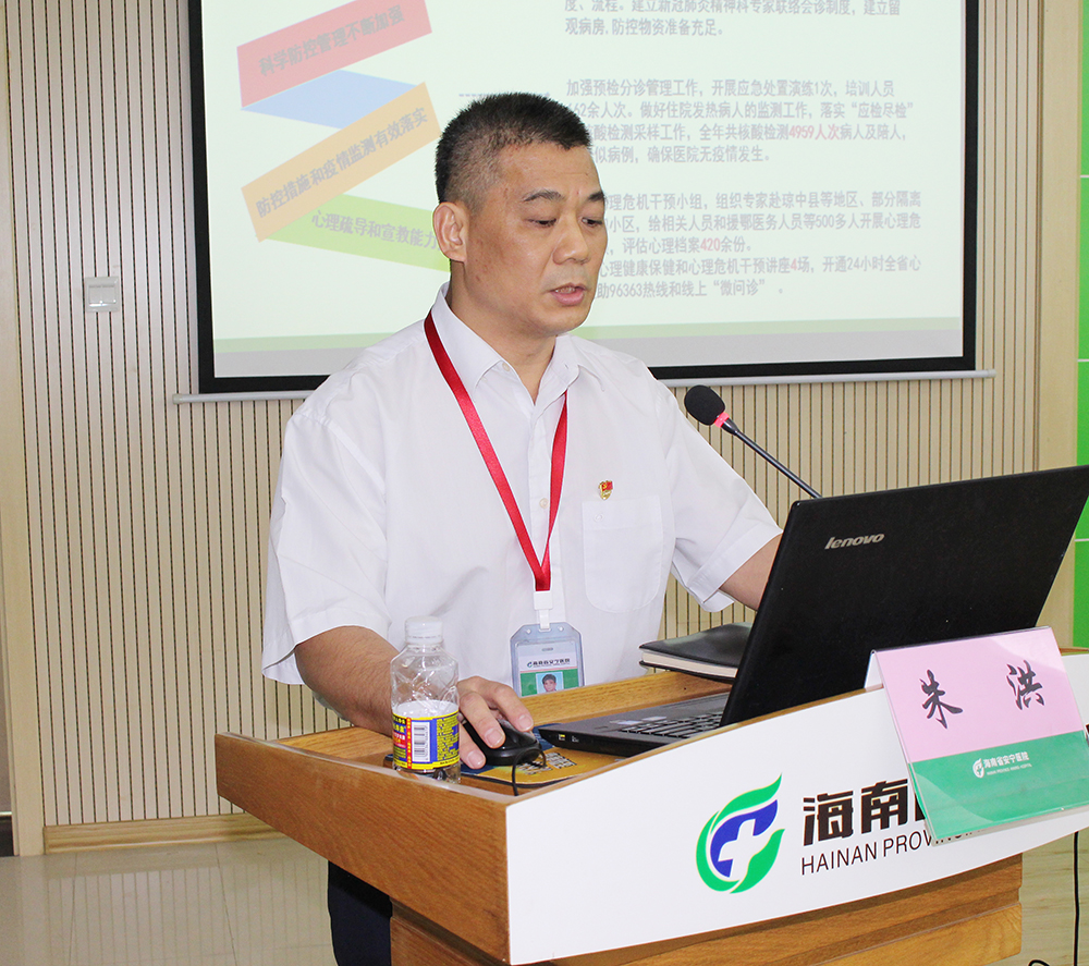 朱洪作2020年度医院领导班子工作总结,他指出,省安宁医院认真贯彻落实省委省政府和省卫健委的总体部署和要求,按照“调结构、补短板、强基础、重质量、保平安、促发展”的工作思路,以创建三级甲等精神专科医院为目标,着力提高医疗质量,深化优质服务,规范医疗行为,增强核心竞争力和发展力,积极完成医院各项工作任务。