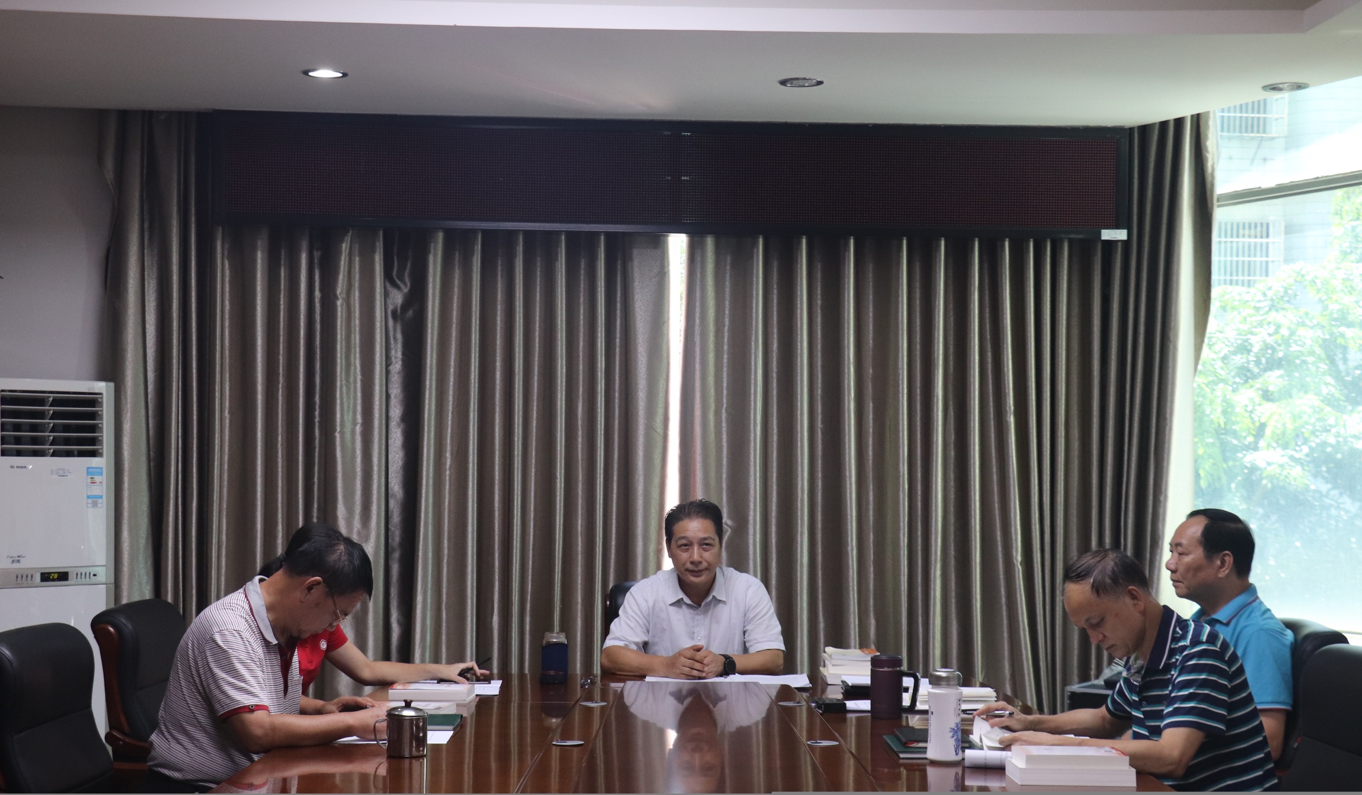 美视网7月27日海口消息(文/图符先森) 7月27日下午,海口市残联举办领导干部党史学习教育读书班。海口市残联党组书记、理事长蔡志森,党组成员、副理事长黄碧海,符海英,党组成员、四级调研员梅秋芳,四级调研员刘德飞参加。
