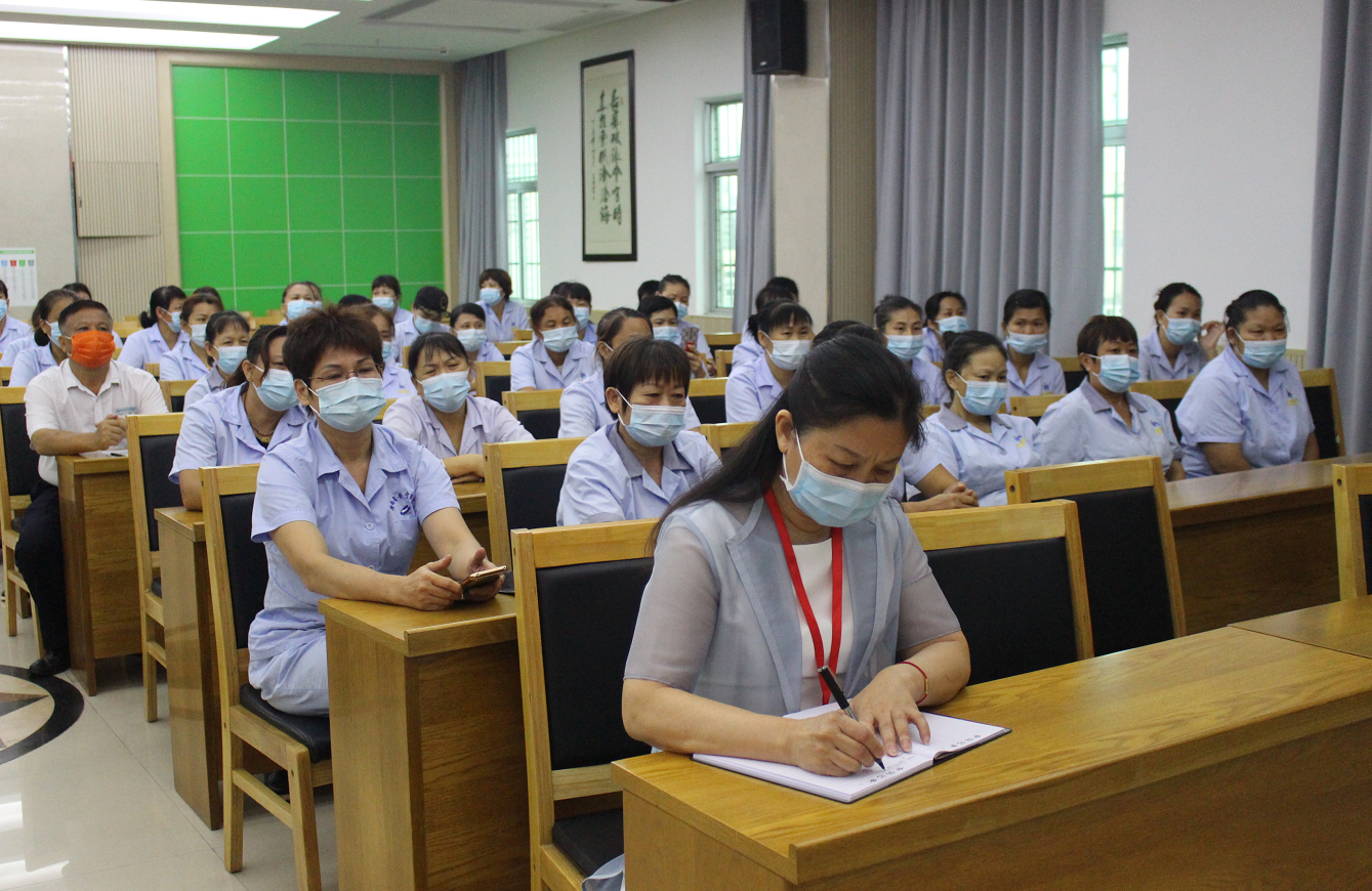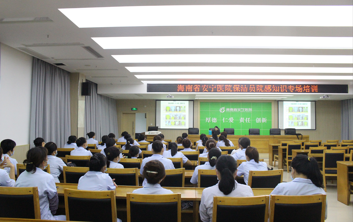 美视网客户端8月10日海口消息(文/图唐晓云)8月10日下午,省安宁医院组织举办保洁员院感知识专场培训班,增强保洁员院感知识,有效预防和控制院内交叉感染,进一步做好疫情防控常态化院感防控工作。医院全体保洁员参加此次培训。