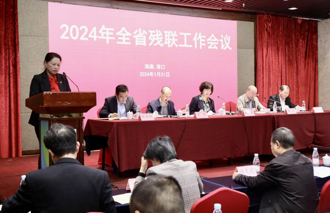 1月31日下午,2024年全省残联工作会议在海口召开。省残联党组书记、理事长蔡琼雅出席会议并讲话,党组成员、副理事长林演传达第三十八次全国残联工作会议精神,党组成员、副理事长吴波主持会议。