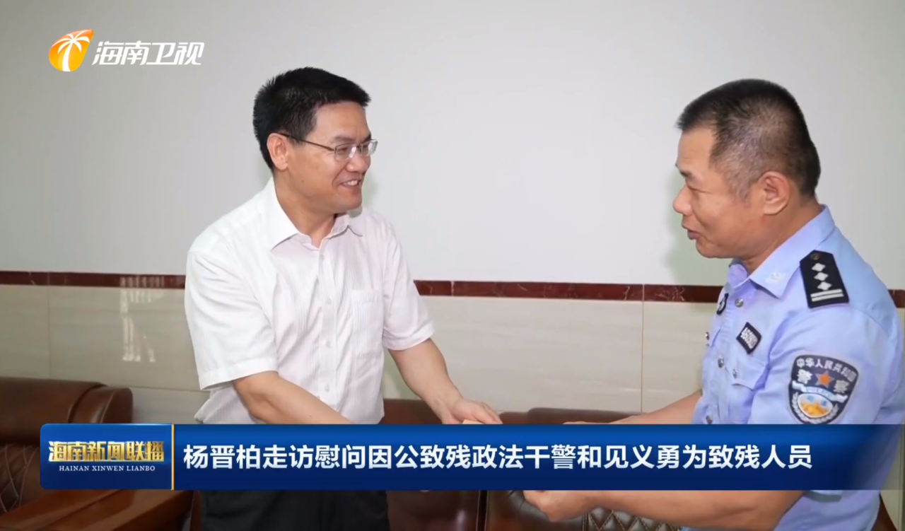 5月17日,省委副书记、政法委书记杨晋柏在海口走访慰问因公致残政法干警和见义勇为人员,代表省委、省政府致以节日问候,并对他们为平安海南建设作出的贡献表示感谢。