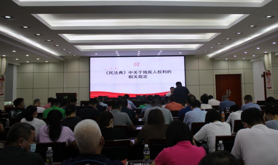 围绕“美好生活·民法典相伴”宣传主题,就如何依法维护残疾人合法权益方面进行了一堂精彩的《民法典》普法专题讲座。重点宣讲了《民法典》中关于残疾人权利的相关规定,讲解了民事行为效力、监护人制度、财产代管、婚姻家庭权益、无障碍环境权及继承权特别保护等内容,帮助参加学习人员掌握《民法典》中关于残疾人核心权益条款,熟悉民事维权程序与实操要点,并以案释法,诠释相关条款内容,为依法维护残疾人合法权益提供了切实可行的理论指导。