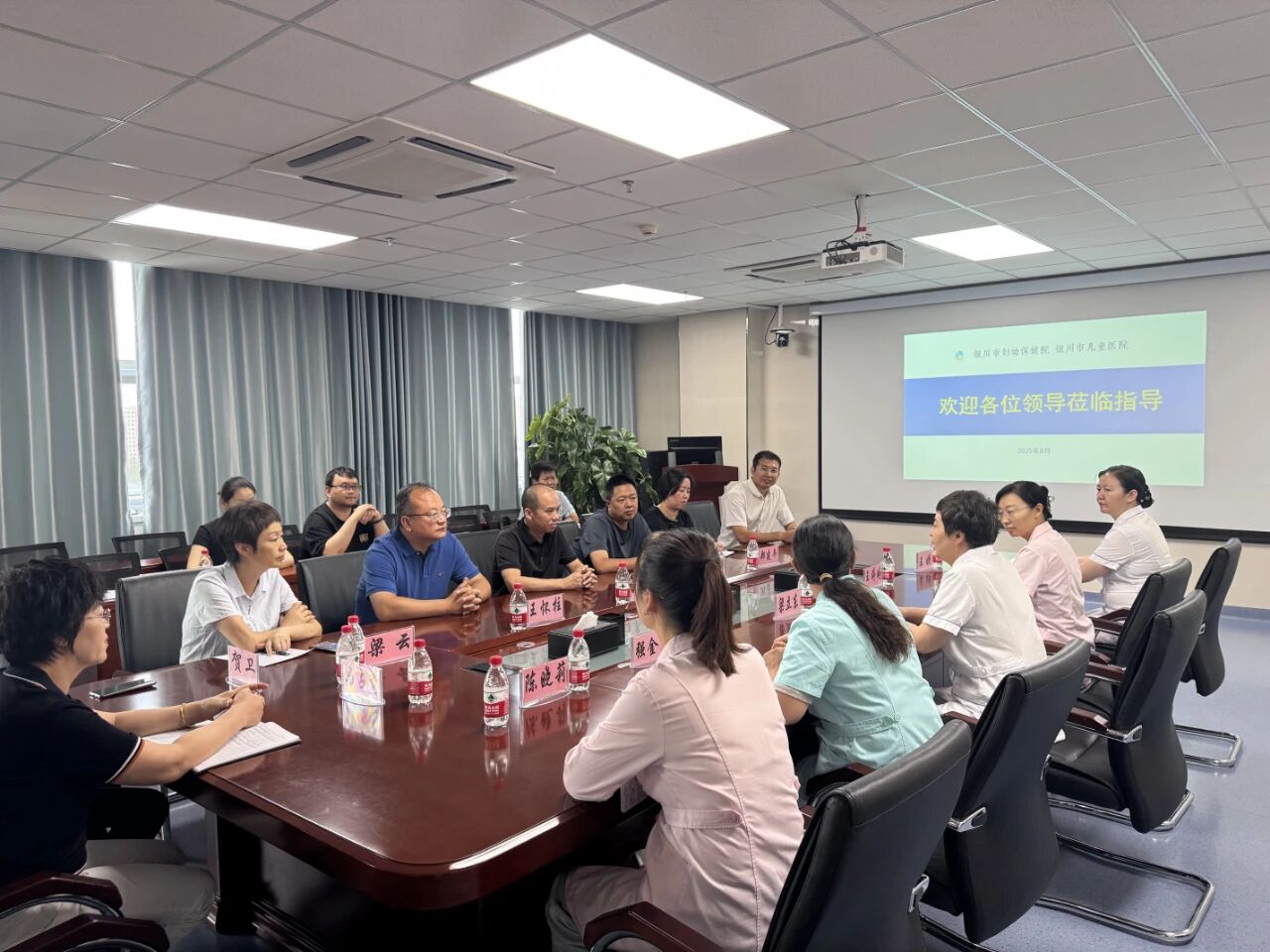 12日,调研组来到银川市妇幼保健院,实地考察了医院儿童康复科室建设情况,并与康复科医务人员进行了深入交流。