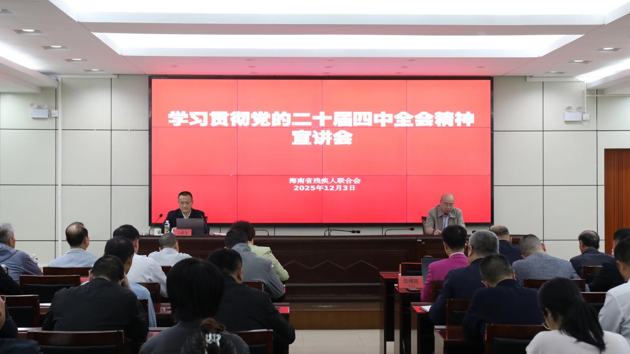 为深入学习贯彻党的二十届四中全会精神,以全会精神精准引领残疾人事业发展航向,切实推动残疾人事业高质量发展,全方位增进残疾人民生福祉,12月3日,省残联组织召开专题宣讲会,特邀海南省学习贯彻党的二十届四中全会精神宣讲团成员、中共海南省委党校常务副校长王绍文同志作专题解读。省残联全体党员干部职工,退休党员、干部代表,省残疾人专门协会负责人,省残疾人基金会工作人员,中狮联海南代表处代表参会。