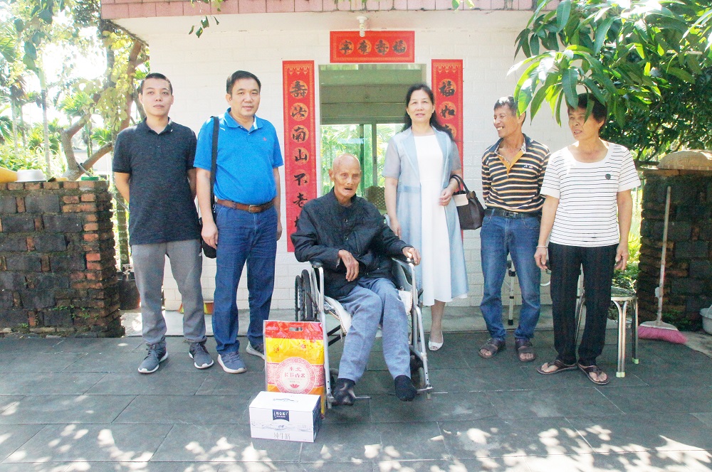 在重阳节到来之际,为弘扬尊老、爱老、敬老的传统美德,10月23日上午,受医院党委委托,院党委委员、人事科科长吴红霞,党办主任蔡春育及团委副书记蒙特一行,专程前往琼海市龙江镇蒙养村老党员程儒龙家中看望慰问,并送上了慰问品,把党的温暖和全院职工的问候带给老同志。