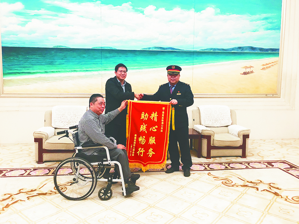 董连飞代表省残联向海口高铁东站赠送了锦旗,感谢该站多年来为残疾人朋友便捷、安全出行所作出的努力。