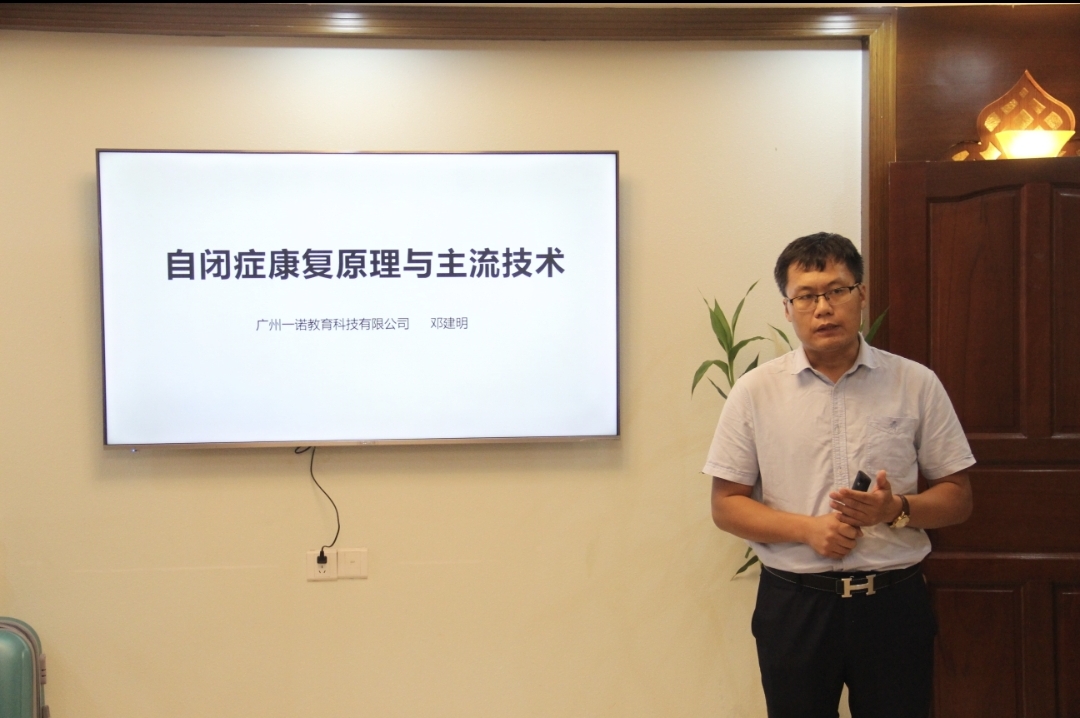 讲座由自闭症资深研究员、广州一诺教育科技有限公司总经理兼创始人邓建明担任主讲。海南省残疾人基金会副理事长陈在文,省盲协副主席、海南和善美健康科技管理有限公司负责人符史勤,自闭症儿童及家长、相关教师等40人参加讲座。