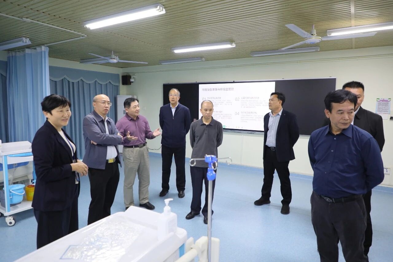 调研组一行在海南科技职业大学副校长兼国际护理学院院长何忠平的陪同下,首先参观了国际护理学院、医药学院的实训基地和教学设施,详细了解学校在护理、康复、医药等领域的实践教学条件、课程设置及人才培养模式。